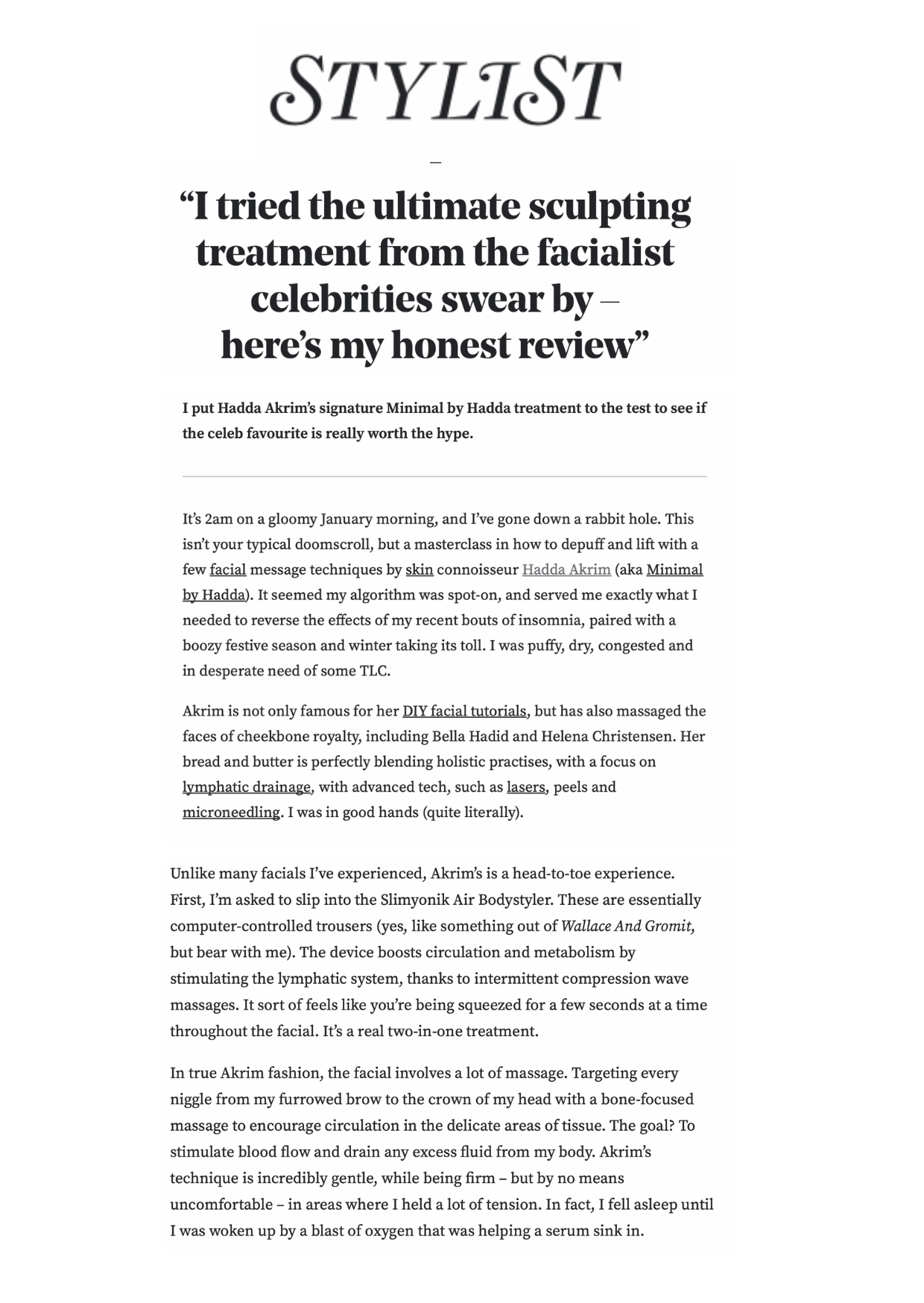 Hadda, also known as ‘Minimal by Hadda’ is a facialist and skin expert. Having suffered with severe acne herself, Hadda educates her clients on her curated approach to skincare and strongly advocates a good skin from within philosophy. With a bespoke approach to her treatments, Hadda specialises in combining holistic techniques with the efficacy of advanced technologies such as lasers, peels and microneedling to create bespoke treatments for each Client.